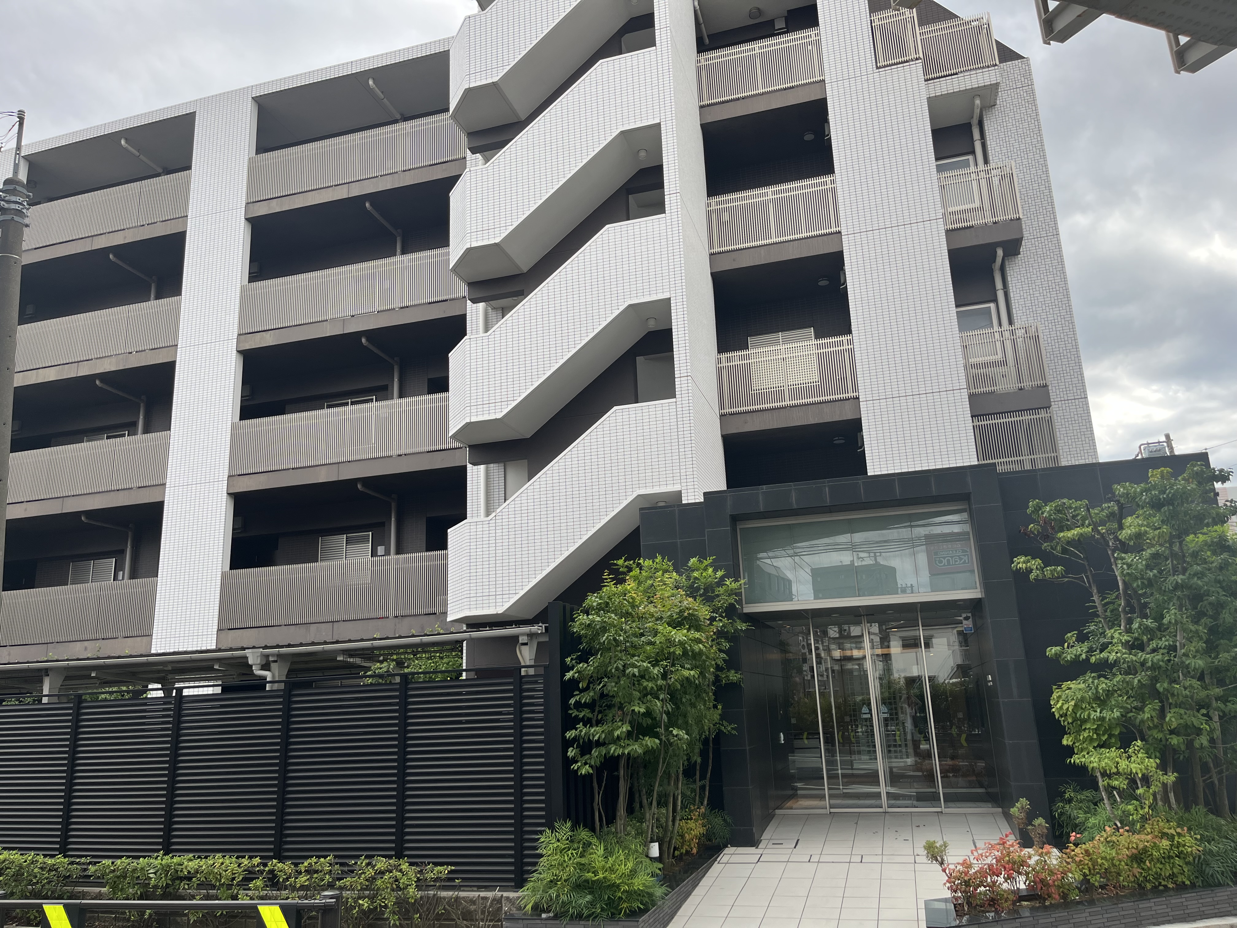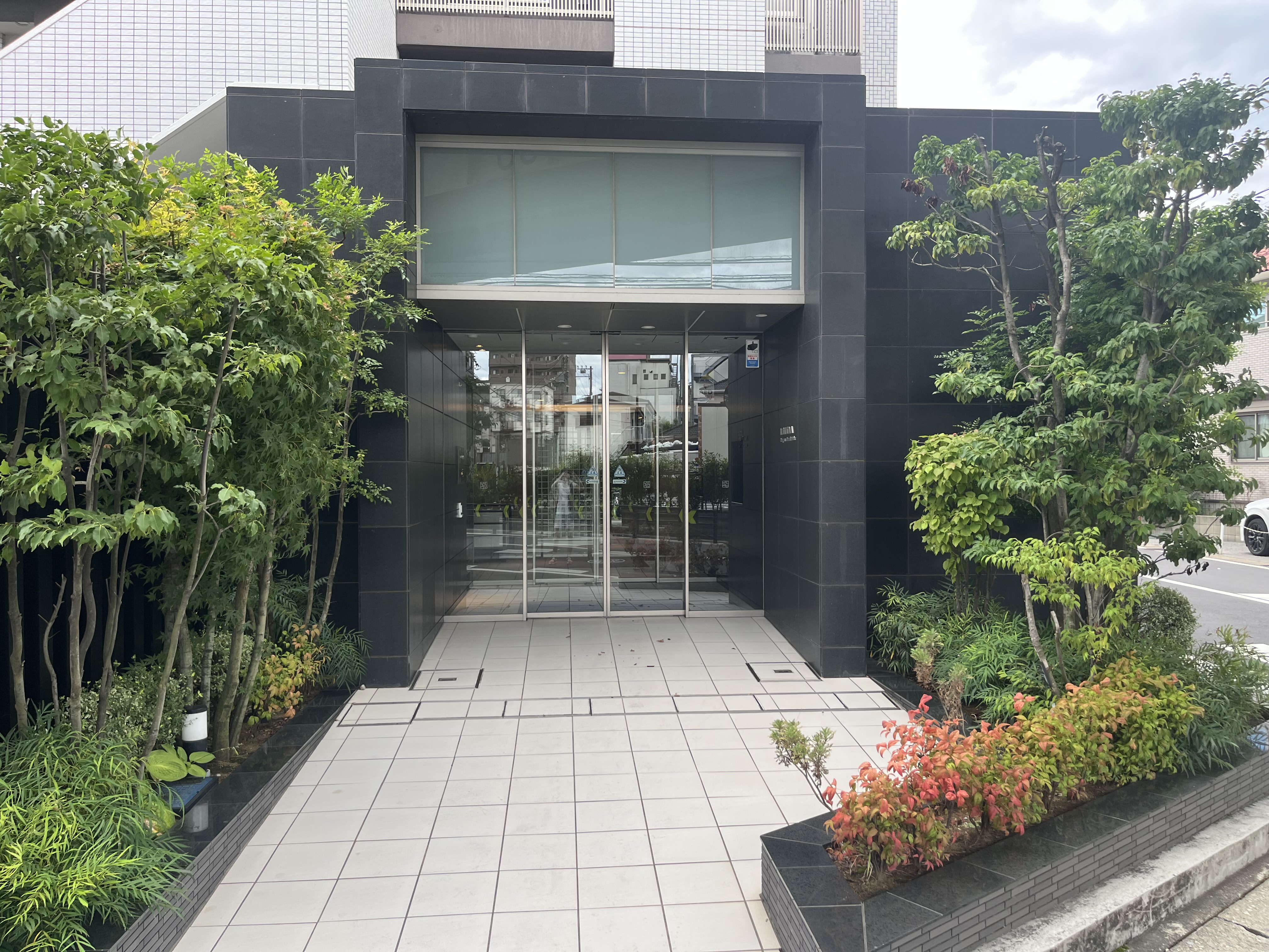 マンションは2015年築の鉄筋コンクリート造6階建て。全戸南向きで、陽当たりと開放感に優れた設計が魅力です。外観はタイル貼りで高級感があり、エントランスには植栽が美しく配され、上品な雰囲気を演出しています。